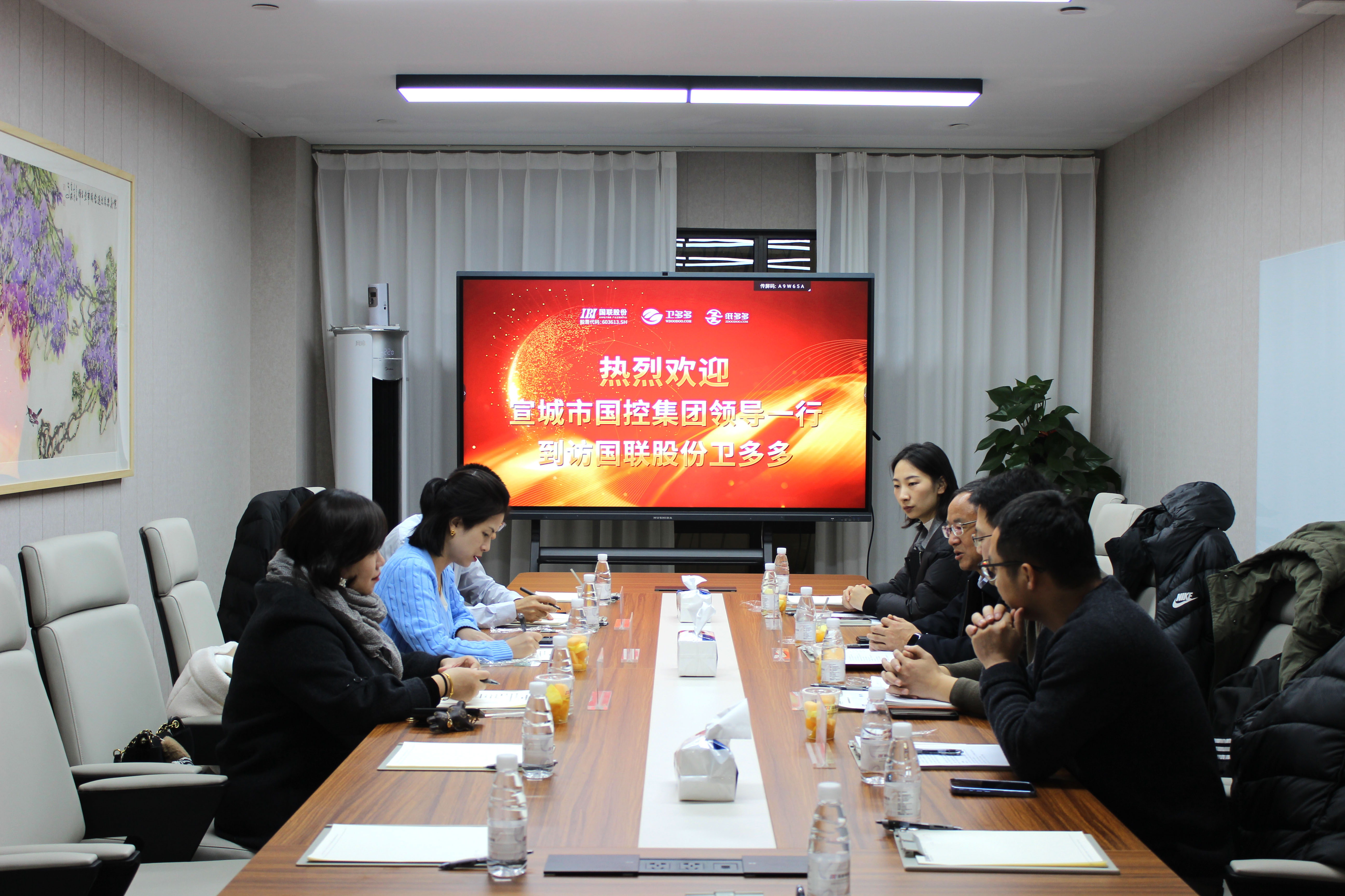 On December 18th, Qian Bangqing, Secretary of the Party Committee and Chairman of Xuancheng State Control Group, and his delegation visited Guolian Corporation Wdoodoo. Huang Shasha, Vice President of Guolian Corporation and CEO of Wdoodoo/Zdoodoo, and Xu Derong, General Manager of Wdoodoo Development Department, warmly welcomed the visiting delegation and conducted in-depth exchanges.